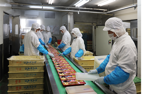シントミフーズ株式会社岡谷支店は、法人様向け産業給食を主要業務に幼稚園・保育園給食、仕出し及び米飯加工委託等を、衛生管理の行き届いた最新鋭給食調理工場で安心の産直食材による味にこだわったメニューづくりでお応えしています。